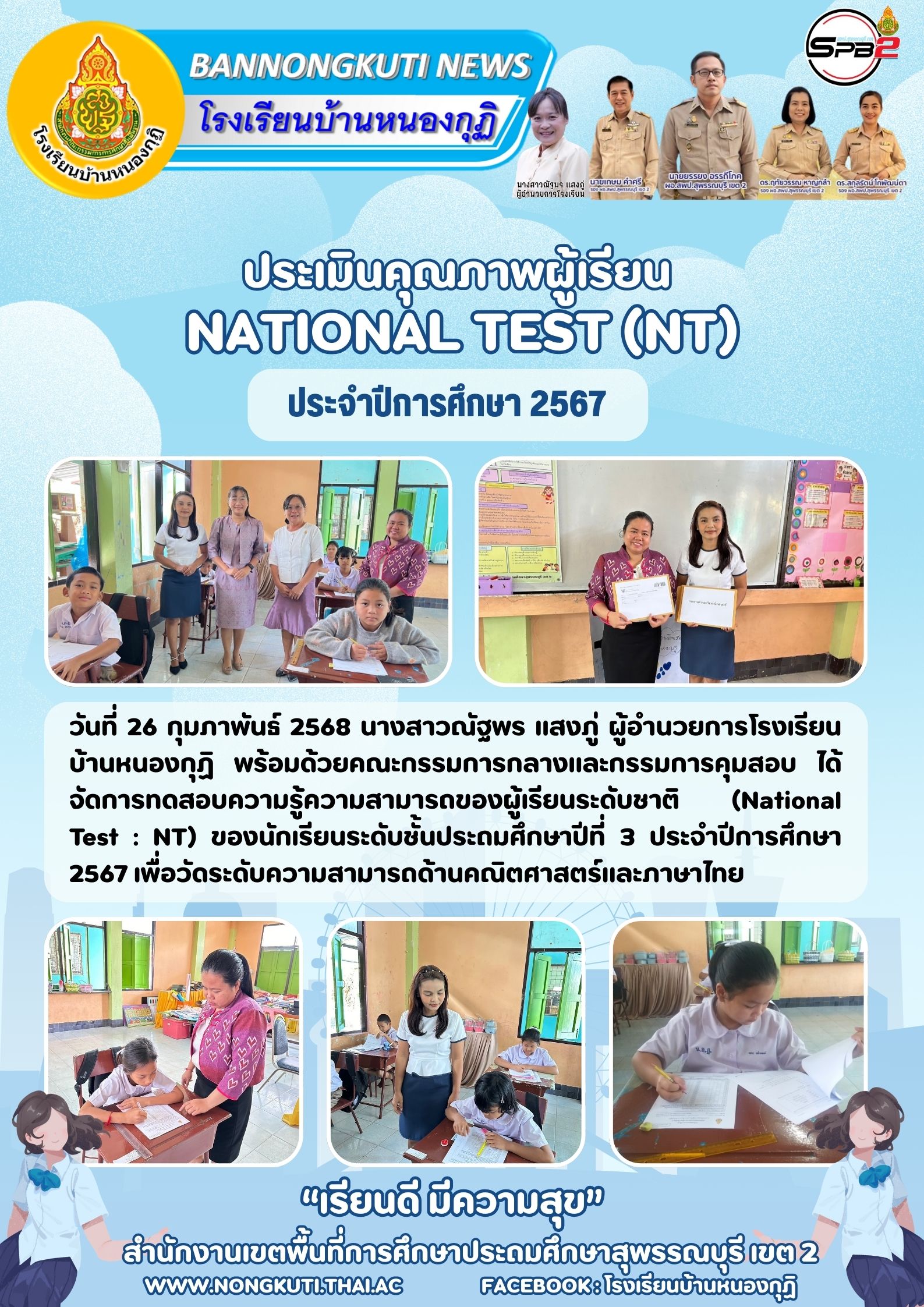วันที่ 26 กุมภาพันธ์ 2568 นางสาวณัฐพร แสงภู่ ผู้อำนวยการโรงเรียนบ้านหนองกุฏิ พร้อมด้วยคณะกรรมการกลางและกรรมคุมสอบ ได้จัดการทดสอบประเมินคุณภาพผู้เรียน National Test (NT) ประจำปีการศึกษา 2567