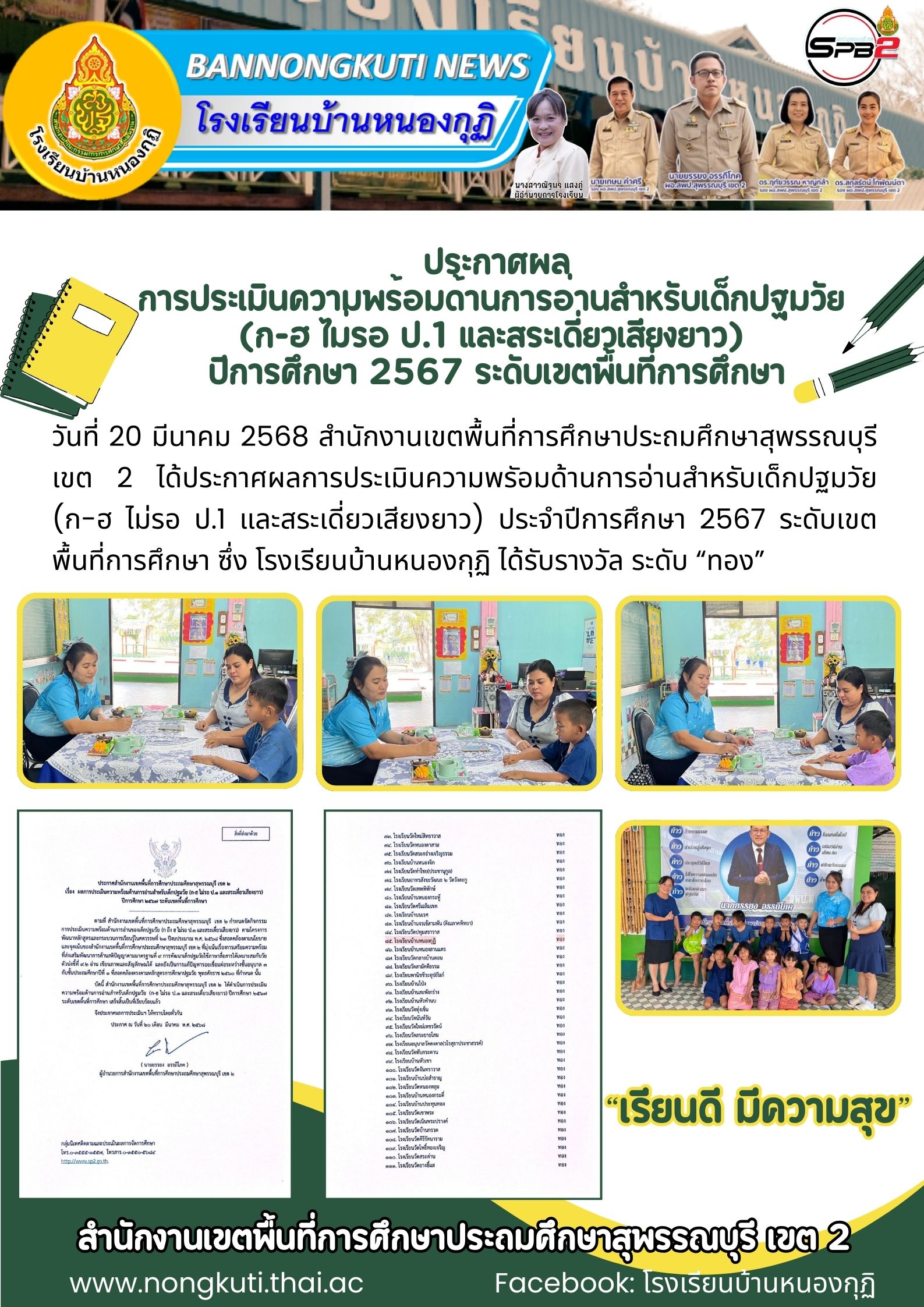 ประกาศผลการประเมินความพร้อมด้านการอ่าน สำหรับเด็กปฐมวัย ชั้นอนุบาล 3 (ก-ฮ ไม่รอ ป.1)