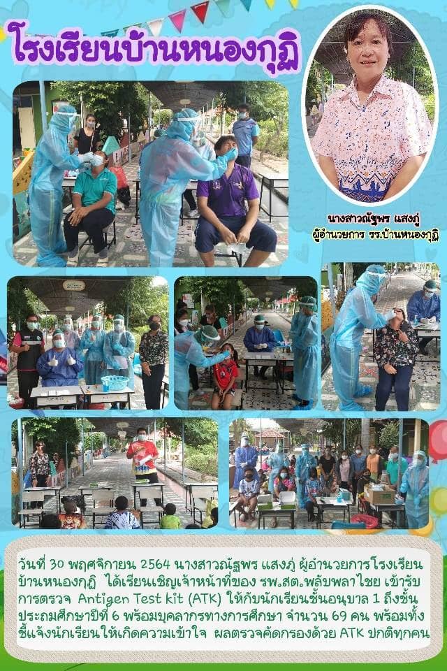 เมื่อวันที่ 30 พฤศจิกายน 2564 คณะครูและนักเรียนโรงเรียนบ้านหนองกุฏิ นำโดยท่าน ผอ.ณัฐพร แสงภู่ ได้ทำการตรวจคัดกรอง ATK ตามมาตรการป้องกันการแพร่ระบาดของโรคโควิด 19 เพื่อเตรียมเปิดเรียนแบบ On site ในวันที่ 1 ธันวาคม 2564 ซึ่งผลการตรวจ คณะครูและนักเรียนทุกคนมีผลเป็นลบ (ไม่ติดเชื้อ) ทุกคน