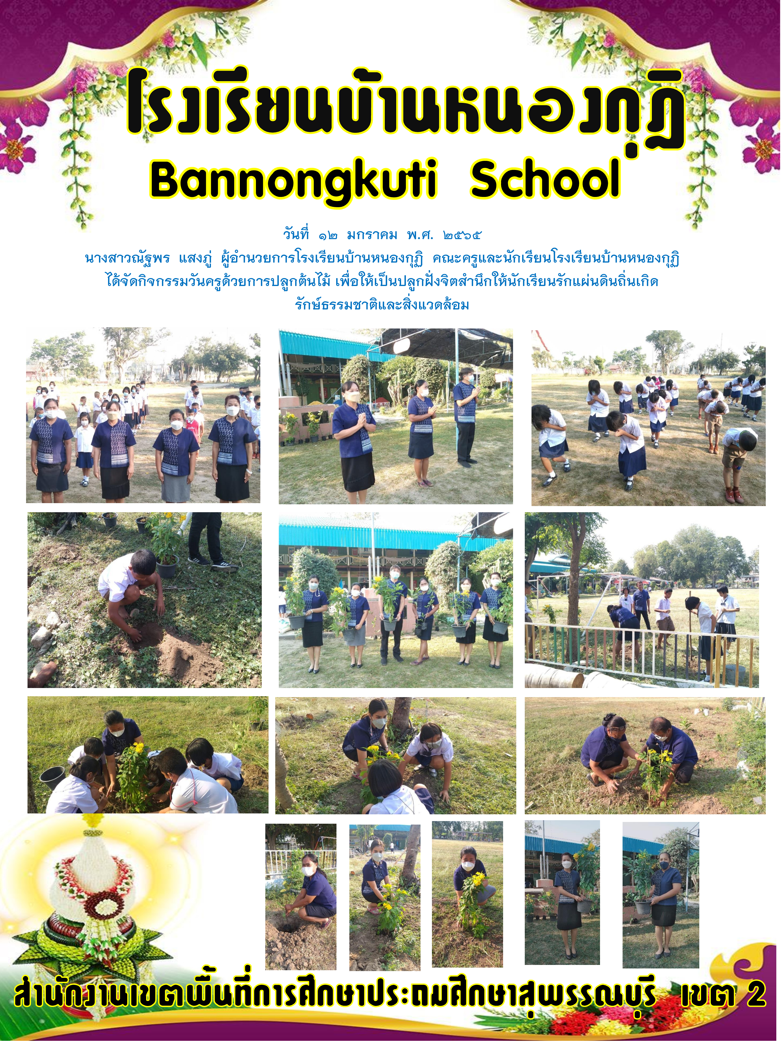 12 มกราคม 2565  ผอ.ณัฐพร  แสงภู่  ผู้อำนวยการโรงเรียนบ้านหนองกุฏิ  พร้อมคณะครู  และนักเรียน ร่วมกันปลูกต้นไม้ เนื่องในกิจกรรมวันครูประจำปี 2565  เพื่อเพิ่มความร่มรื่น  สวยงามให้โรงเรียนและเป็นการส่งเสริมปลูกฝังให้นักเรียนมีสำนึกรักษ์ธรรมชาติ และสิ่งแวดล้อม
