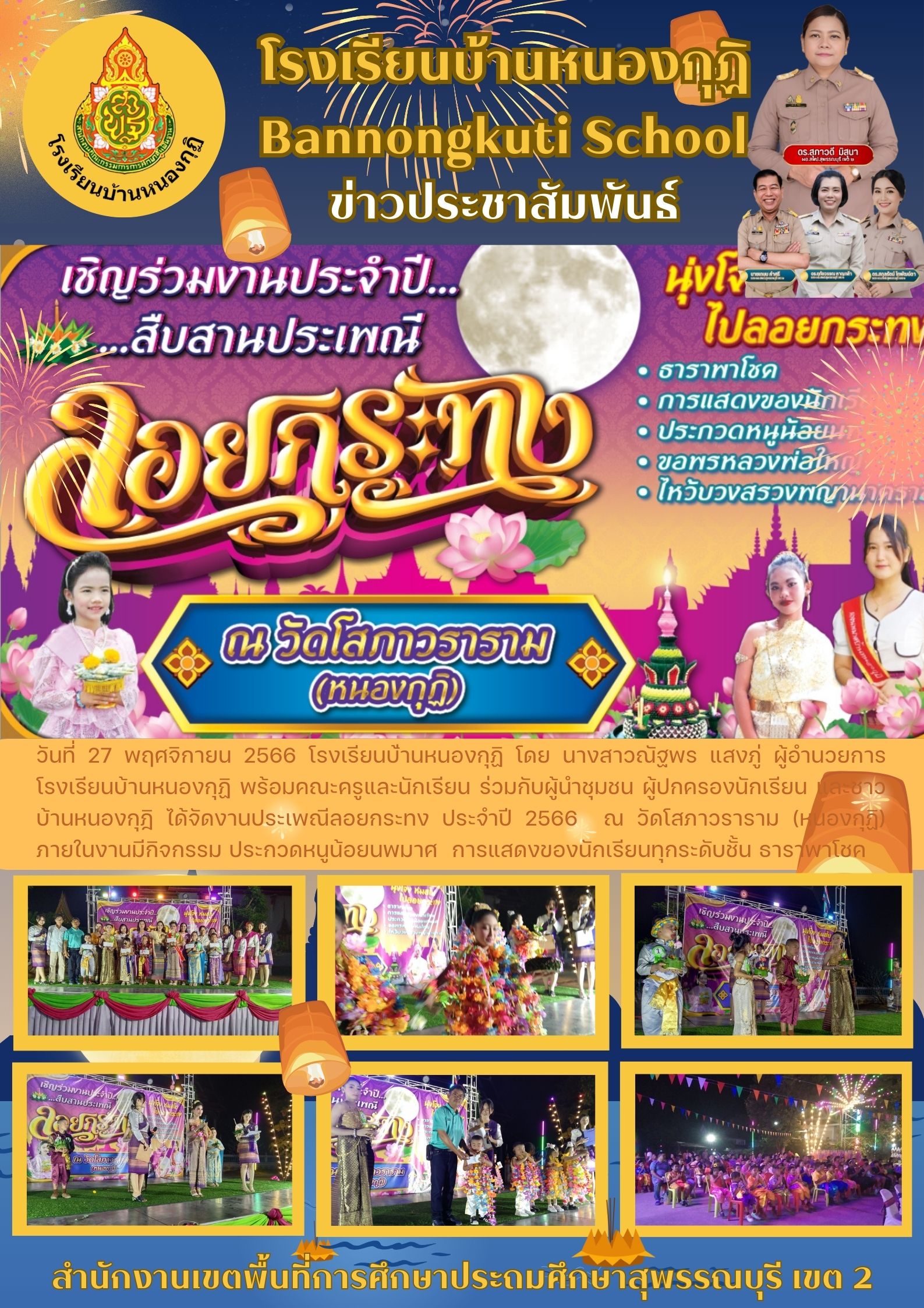 27 พ.ย. 2566 โรงเรียนบ้านหนองกุฏิ ร่วมกับ วัดโสภาวราราม ชาวบ้านบ้านหนองกุฏิ ได้จัดงานประเพณีลอยกระทง ประจำปี 2566 ภายในงานมีกิจกรรมต่าง ๆ มากมาย อาทิ เช่น การประกวดหนูน้อยนพมาศ การแสดงของนักเรียนโรงเรียนบ้านหนองกุฏิ ธาราพาโชค ซึ่งการจัดการดังกล่าวได้รับการสนับสนุนจากท่านพระครูโสภณชยานุศาสน์ เจ้าอาวาสวัดโสภาวราราม ผู้นำชุมชน คณะกรรมการหมู่บ้าน และชาวบ้านบ้านหนองกุฏิ ทำให้งานสำเร็จลุล่วงไปด้วยดี