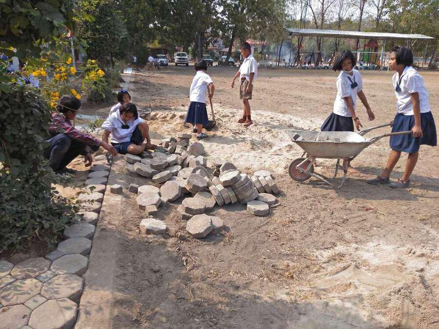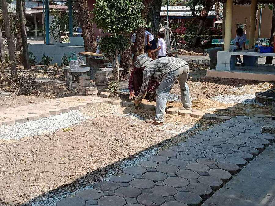 ปรับปรุงภูมิทัศน์....ปูตัวหนอน....โรงเรียนบ้านหนองกุฏิ